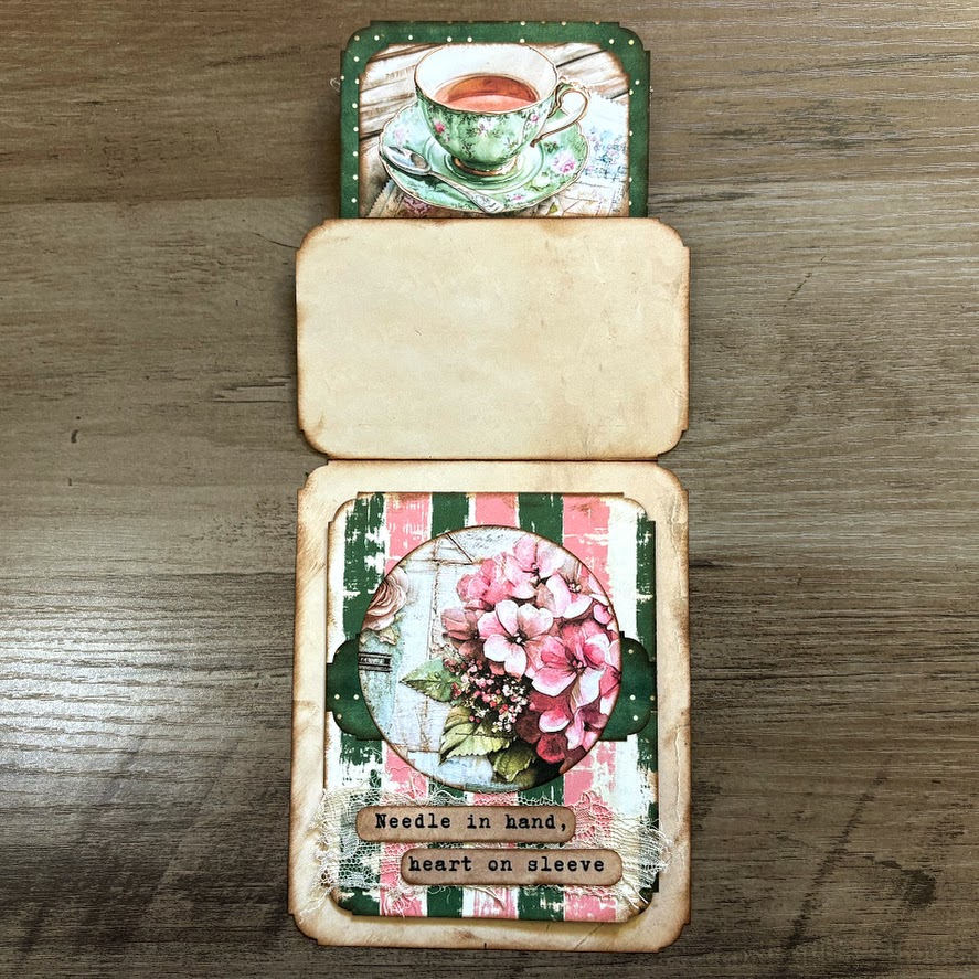 Today, I’m sharing another card maker–inspired fold that’s perfect for junk journals. This sweet little piece may look tiny, but it packs in two flip sections, six hidden writing spaces, and even a pocket! Plus, we’ll add a belly band so it can tuck neatly into your journal while still being removable.