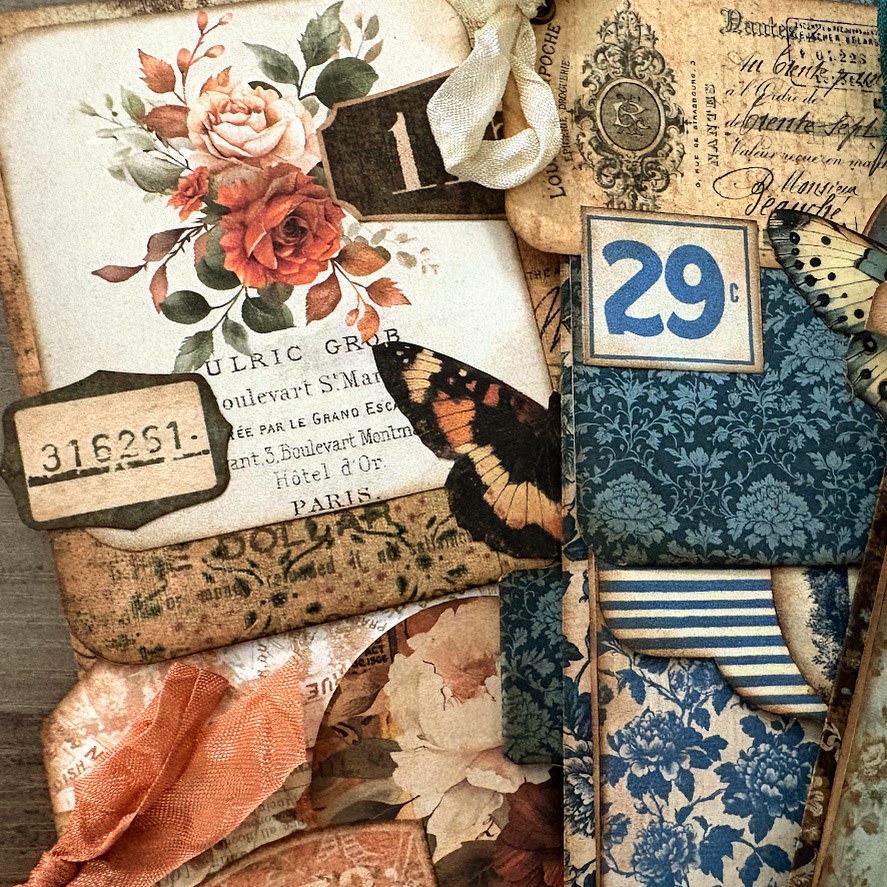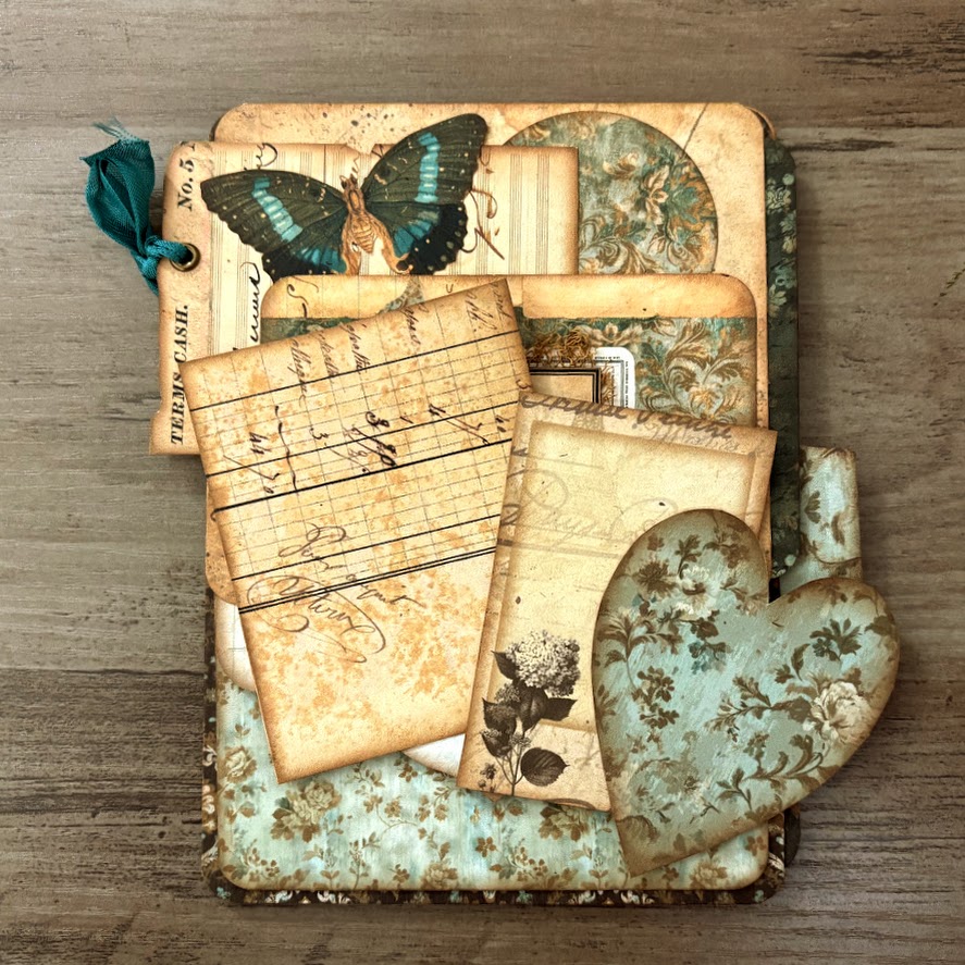 We’ll build a stacked tip-in design with pockets, a sweet focal cluster, and a tiny hidden pocket for extra journaling bits. Tip-ins are perfect for adding movement, texture, and writing space to your journals — and this one is so easy to customize!